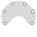 たとえば左図のような形の導体に6個の正電荷が存在するときは、綺麗に均等に6個配置されます。