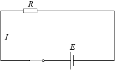 スイッチを閉じた瞬間は、起電力の電圧がすべて抵抗の部分に掛かるので E = RI、つまり電流は、