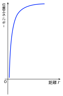 2物体の距離 r が近いときは位置エネルギー U がとてつもなく小さく、距離が遠いほど位置エネルギーは大きくなっていき、その最大値は 0 です。