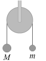 物体の質量はそれぞれ M、m(M > m)で、滑車は天井に固定されていて、なめらかに回り、質量が無く、糸にも質量が無いとします。重力加速度の大きさを g とします。