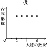 この場合、針金には電流は流れないので針金の本数が何本になっても合成抵抗の大きさは変わりません。答えは ③ です。
