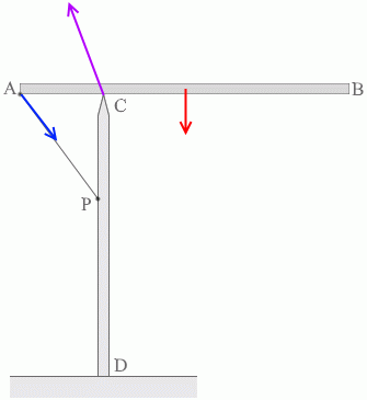 あともう一つの力は点Cからの力であり、棒ABが動かないためには、これは上向きの力であるはずです。